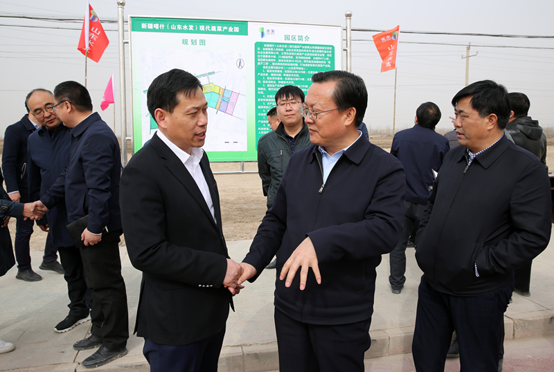 新疆維吾爾自治區黨委副書記李鵬新一行到新疆喀什(山東水發)現代蔬菜產業園項目現場進行調研